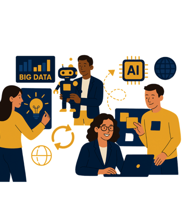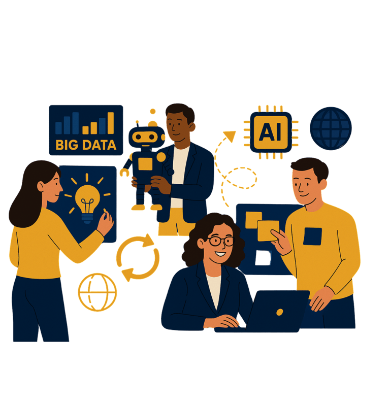Mini-workshop de Design Thinking, análise de cases de empresas inovadoras, debates sobre ética em IA.